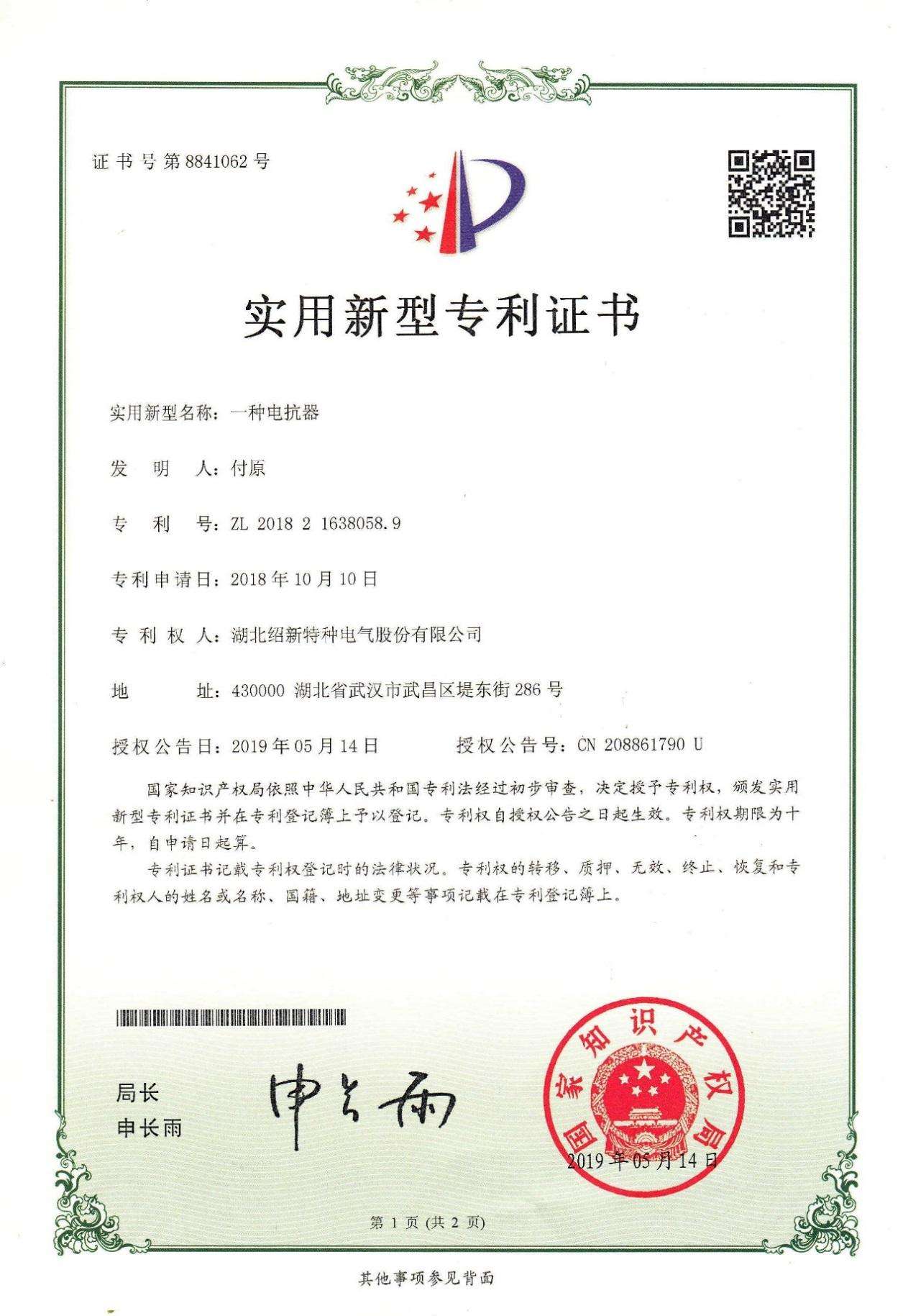 • 專(zhuān)利證書(shū)