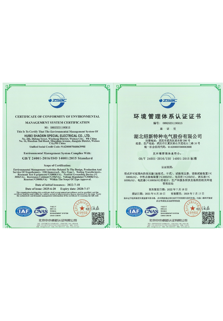 • 環(huán)境管理體系證書(shū)