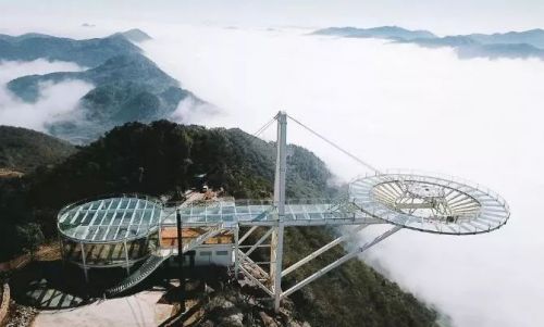 在天空之城游客中心乘坐纜車往上,纜車長(zhǎng)約1500米纜車,沿途風(fēng)景一覽無(wú)余。索道上景區(qū)的核心景點(diǎn)天空之鏡玻璃觀景平臺(tái),是世界上大的玻璃底觀景平臺(tái),有著世界吉尼斯紀(jì)錄的加持,這里海拔正好是520.1314米。