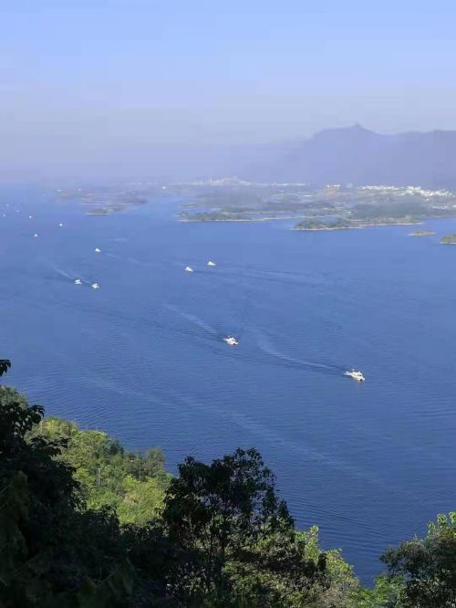 第二天早上吃完早餐,我們就來(lái)到了仙島湖中心碼頭, 40分鐘的游船旅程。昨天是在山頂看風(fēng)景,今天我們就是身處在千島之中,周圍風(fēng)景美如畫(huà),明媚的陽(yáng)光,清澈的湖水,透徹藍(lán)天,飄絮白云下淳樸的漁民。即使看過(guò)了神秘而壯闊的海,見(jiàn)過(guò)無(wú)數(shù)千篇一律的草木叢林,也無(wú)法不為它的寧?kù)o、與世無(wú)爭(zhēng)而心動(dòng)。